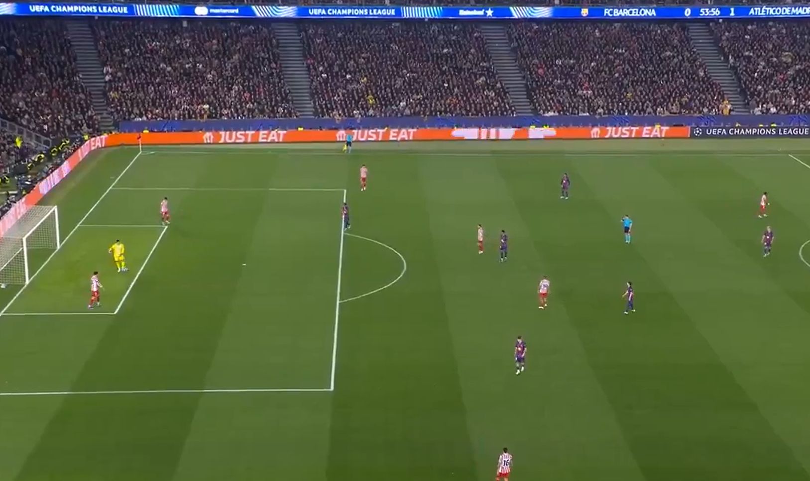 There was some debate over whether Lamine Yamal had entered the area before the goal-kick was taken, but this only appears to happen once the goal-kick is – in Barcelona’s eyes – taken by Musso.