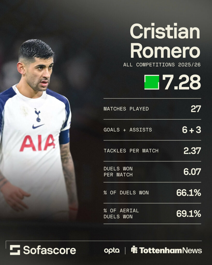 As shown in the Sofascore graphic below, Romero is one of the best centre-backs in England, and he would ordinarily be a tough man to replace.
