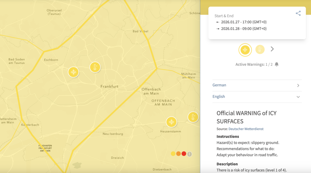 As per MeteoAlarm, there is a risk of icy surfaces, and fans should expect the ground to be slippery when travelling around Frankfurt.