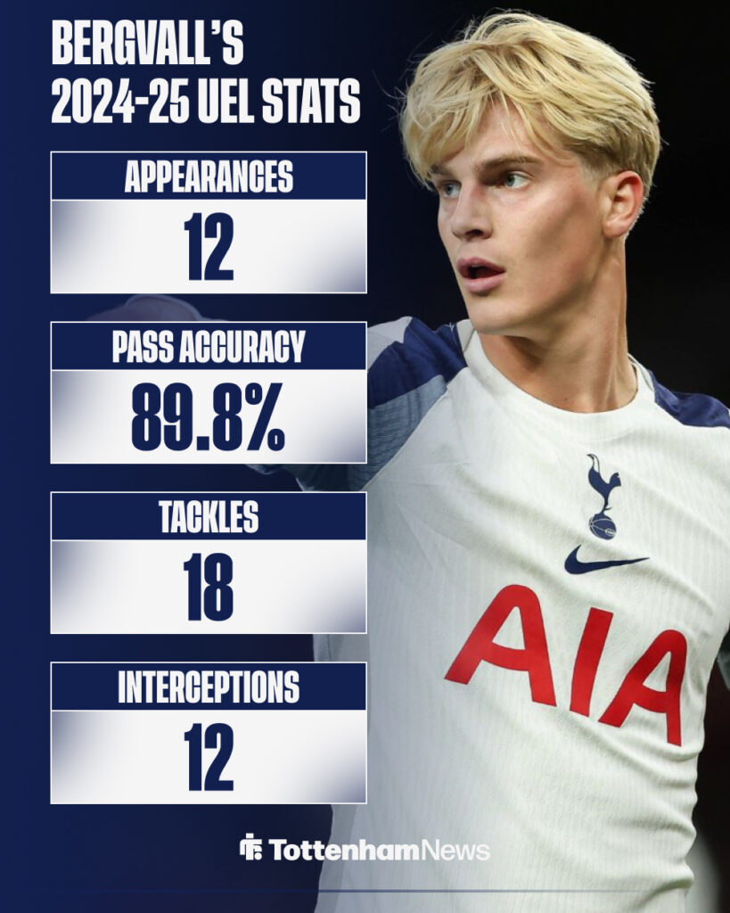 Despite Tottenham’s turbulent 2024-25 season under Ange Postecoglou, Bergvall played a significant role in the Europa League win, featuring 12 times as Tottenham beat Manchester United 1-0 in the final.