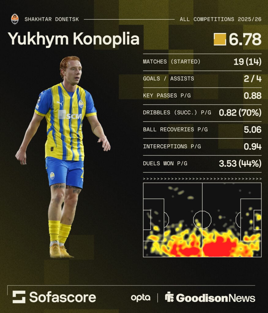- Konoplya’s contract expires with Shakhtar in September 2026